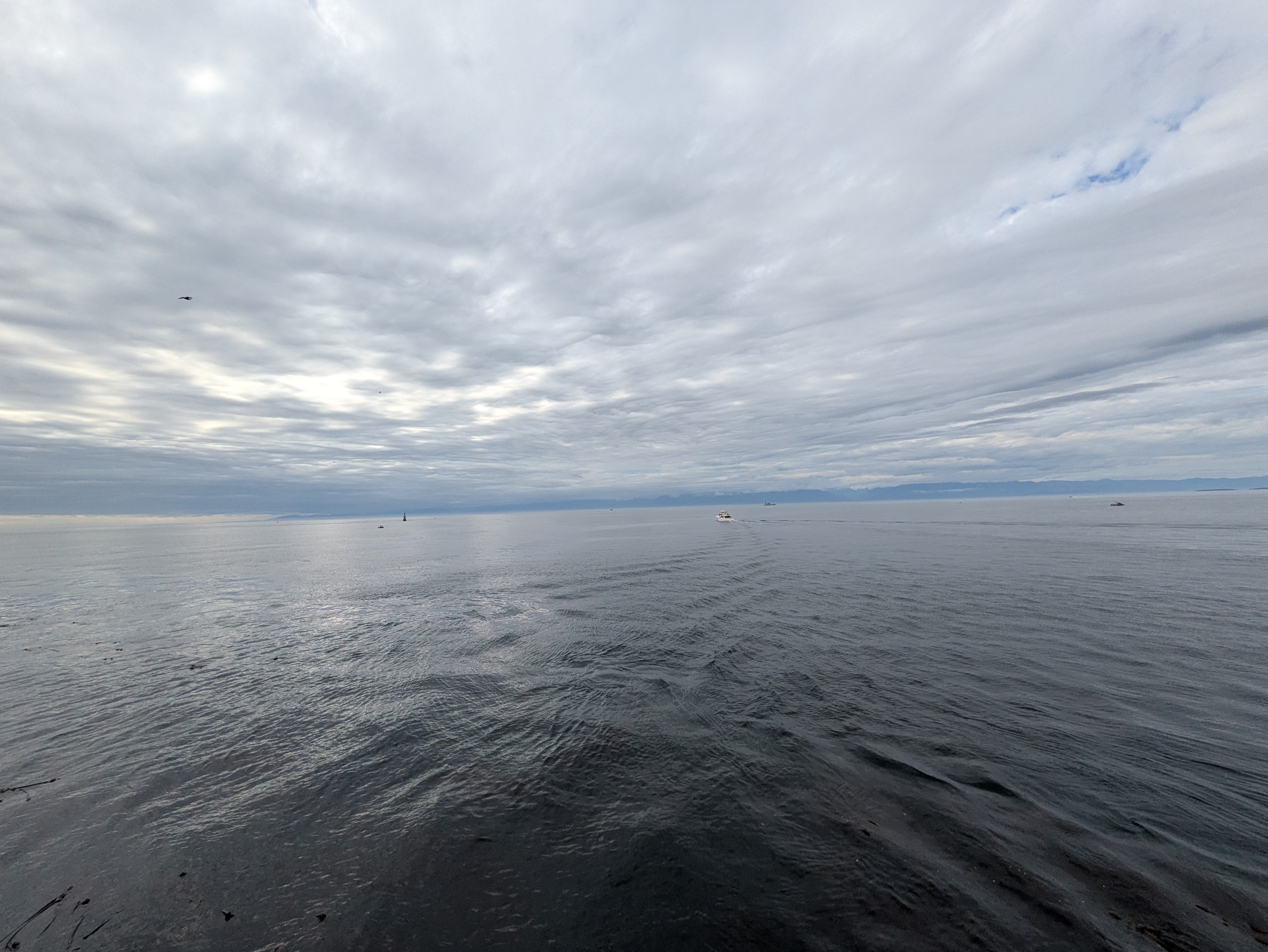 I picked up dinner, returned my rental car, grabbed my luggage, and hauled everything onto the ferry. The crossing through the strait was breathtaking. I could feel the rough currents and see both Vancouver Island’s calm skies and the stormy clouds hanging over the Olympic Mountains behind Port Angeles.